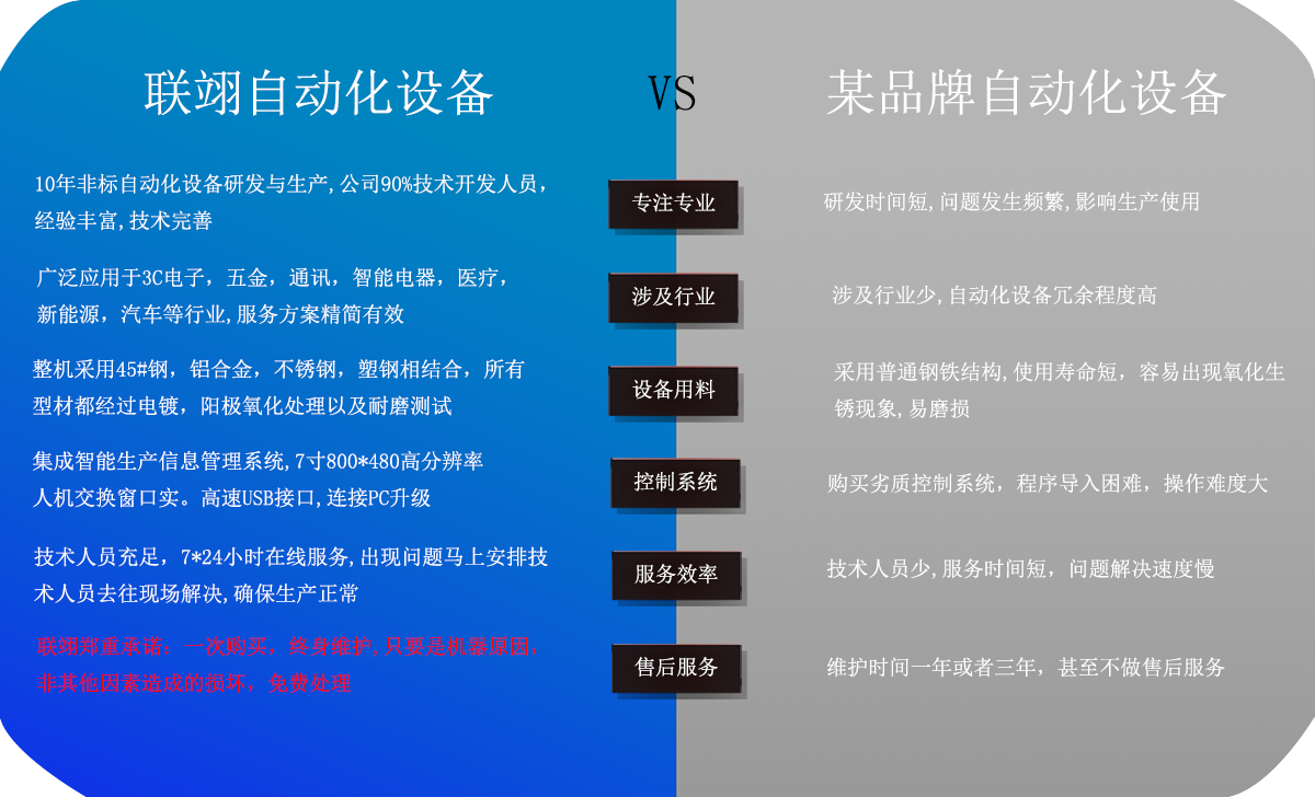 聯(lián)翊專注于助力企業(yè)邁向自動化,減少人工成本,增加生產(chǎn)能力,提升行業(yè)競爭優(yōu)勢,從方案→設(shè)備→售后,一站式設(shè)備服務(wù)提供商,選擇聯(lián)翊,終身無憂。